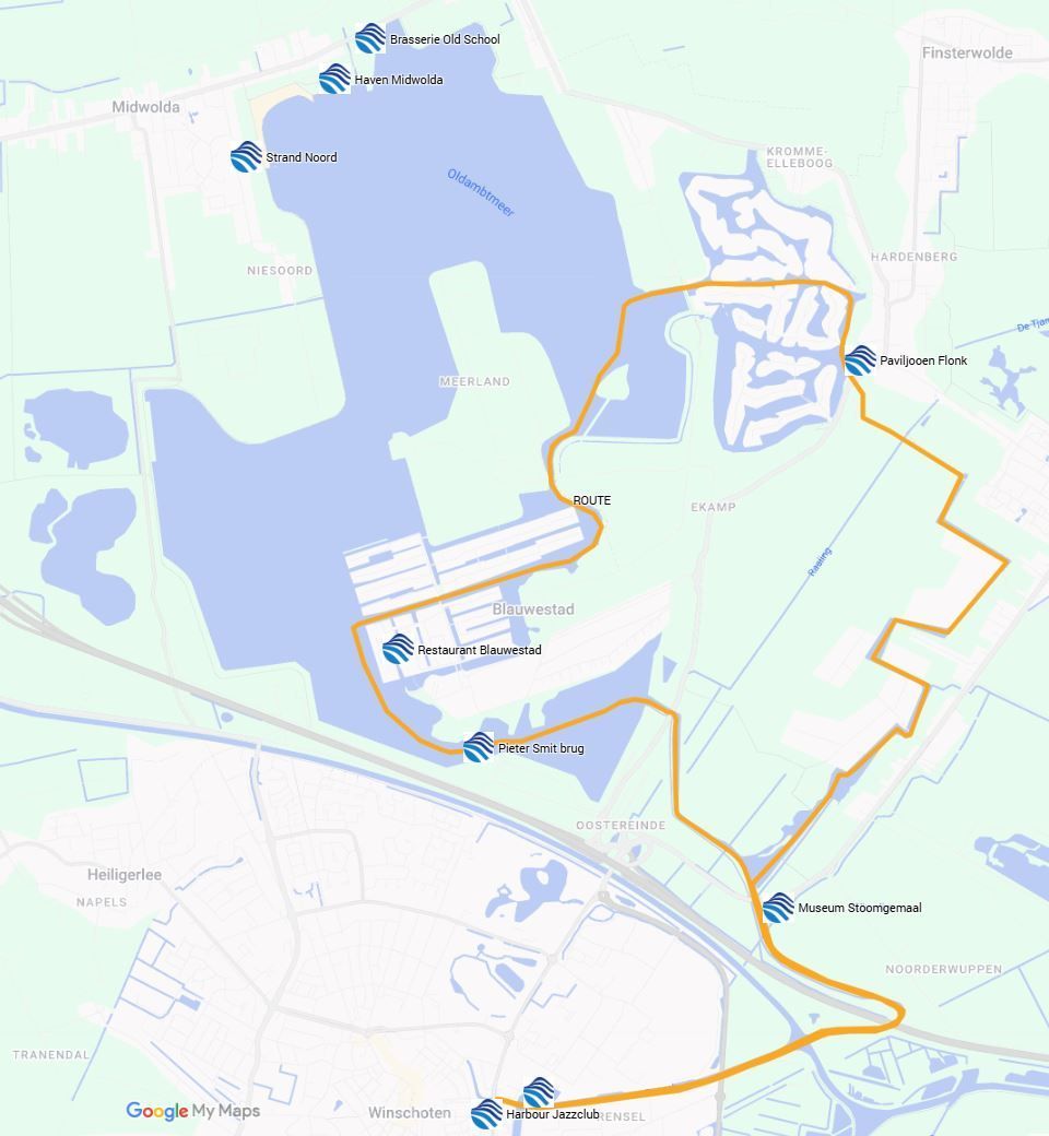 Opstappen in hartje centrum Winschoten aan de Renselkade of in de haven, vervolgens varen we via sluis Blauwestad naar het Oldambtmeer. Onderweg komen we onder de 800 meter lange Pieter Smitbrug door, varen we dwars door het dorp Blauwestad en gaan we via Finsterwolde en Beerta terug naar Winschoten.